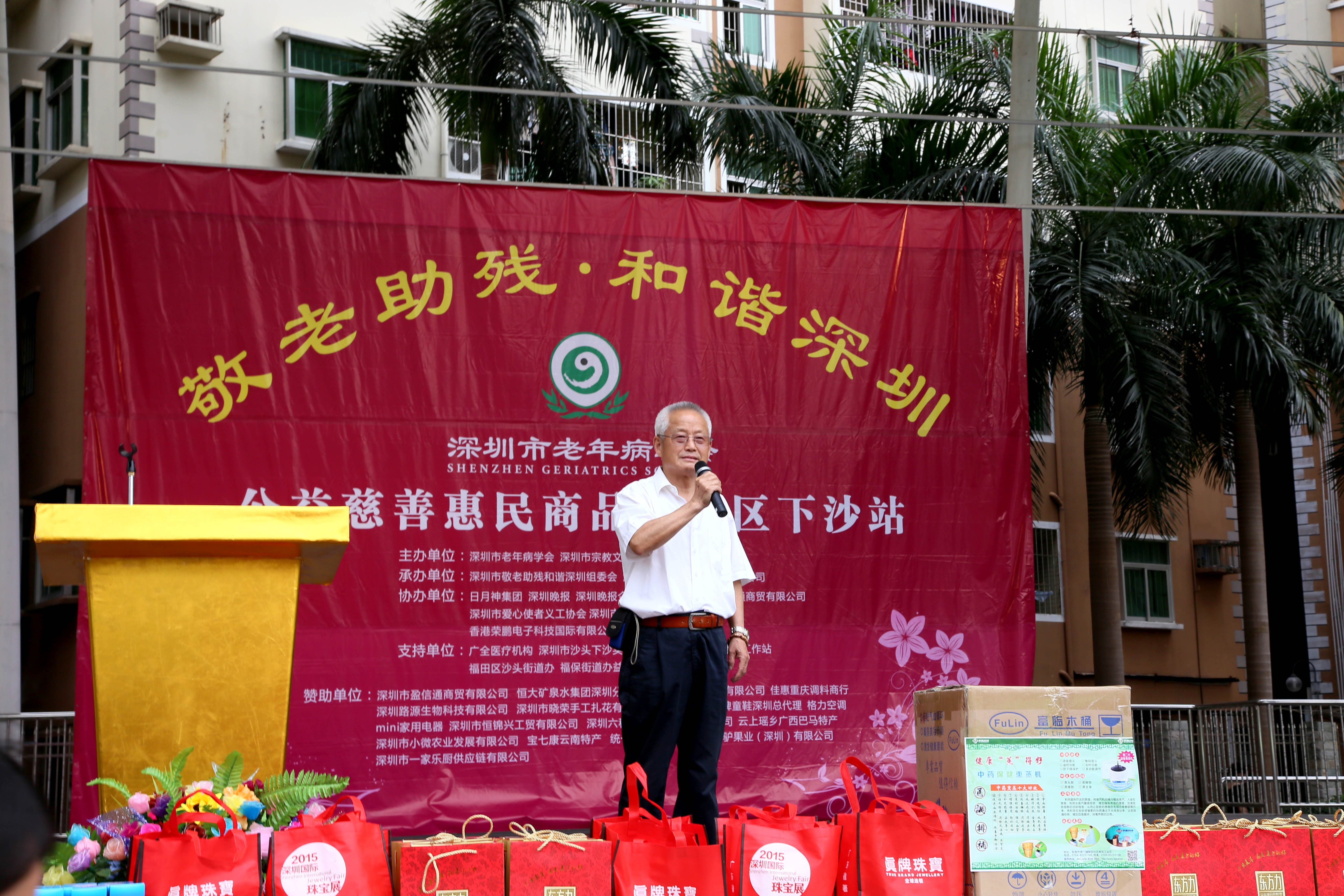由深圳市老年病学会、深圳市宗教文化研究会联合举办,深圳“敬老助残和谐深圳”组委会承办的此项“敬老助残”活动。旨在通过社会组织、企业共同参与,开启居民之公益行动,帮助需要帮助的老人、残疾人等。为社区居民提供优质价廉的直销商品及农产品,激发市民对“敬老助残”活动的积极参与和热情,从而营造和谐深圳,达到“敬老助残”的善举。