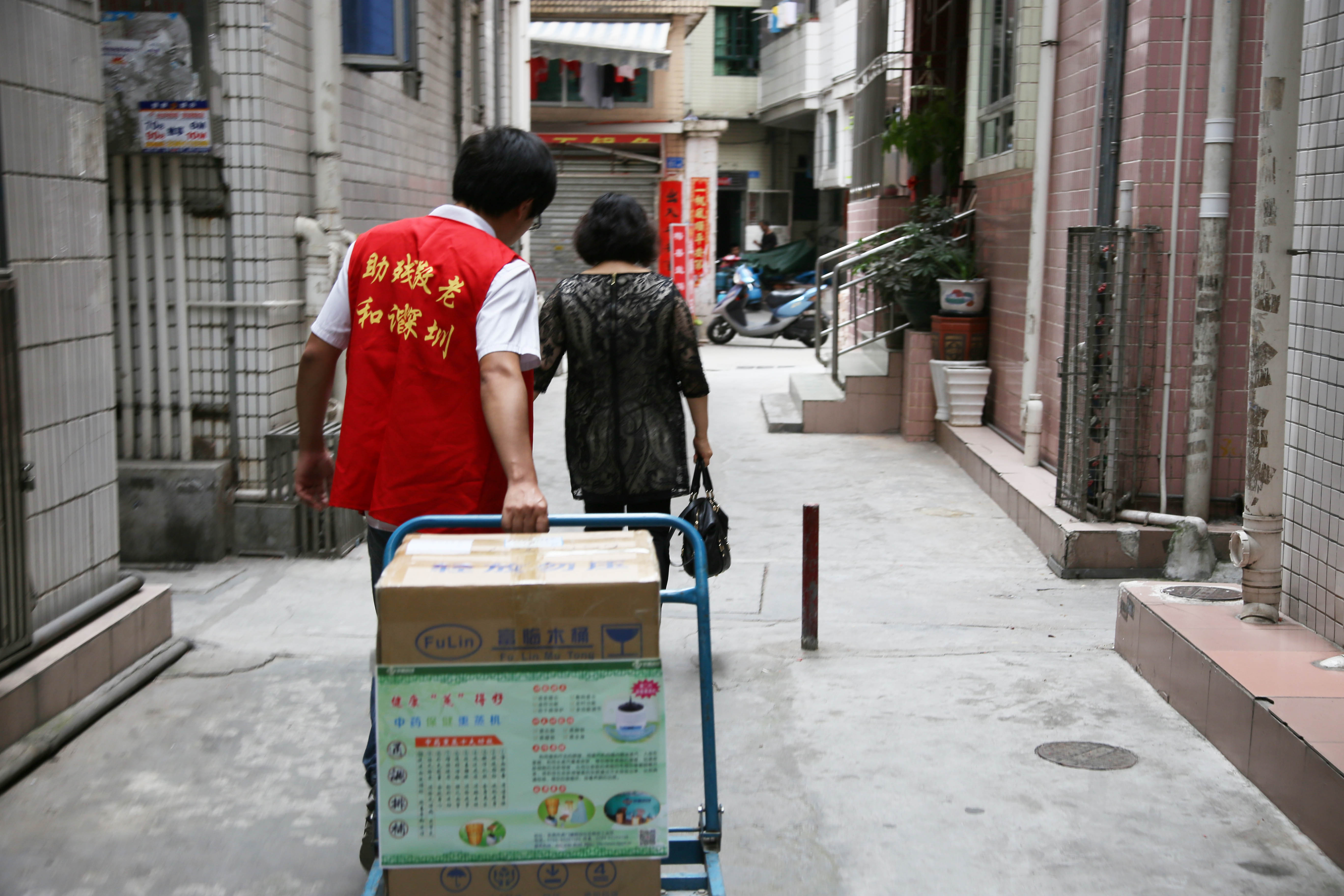 为老年人、残疾人派发爱心企业赞助的物资